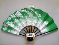 A2517 舞扇子 ホロかすみ 緑ピース 青金地 黒骨 【箱なし】